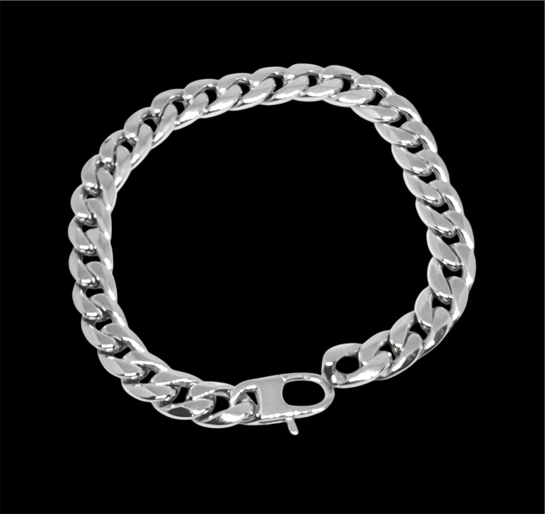 14K Solid White Gold 8mm Hollow Cuban Link Chain Bracelet