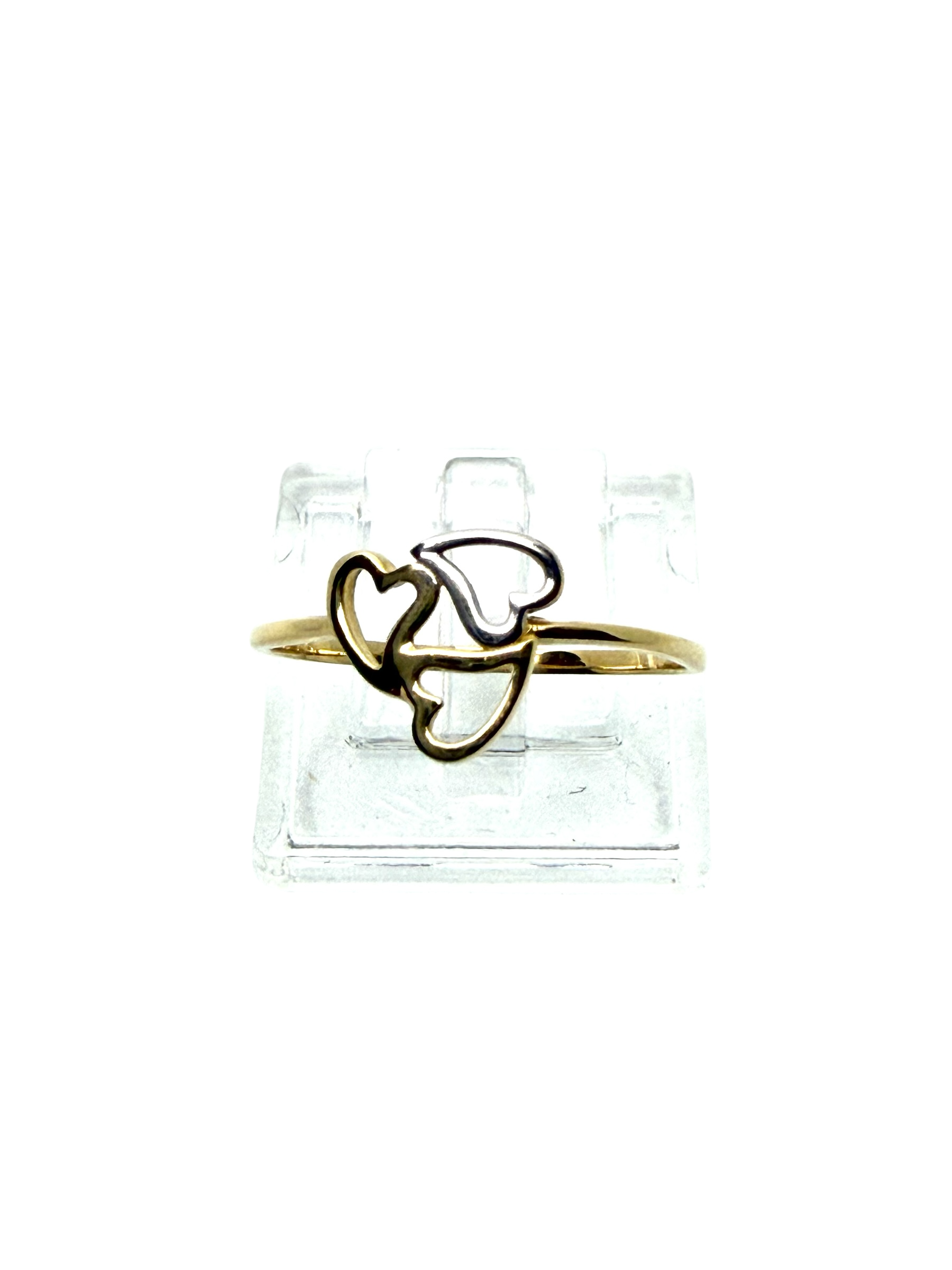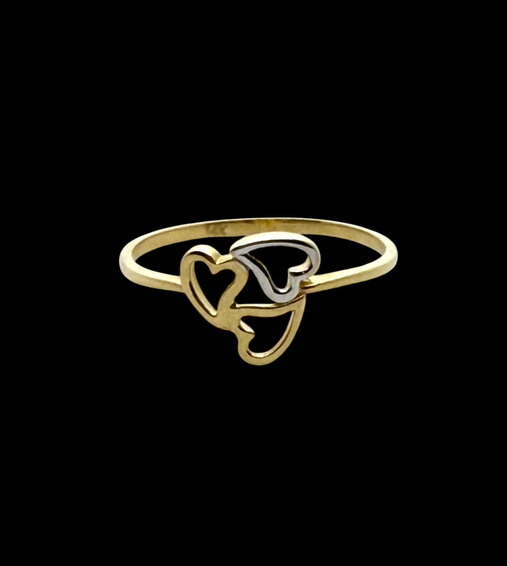14K Solid Gold Three Hearts Ring
